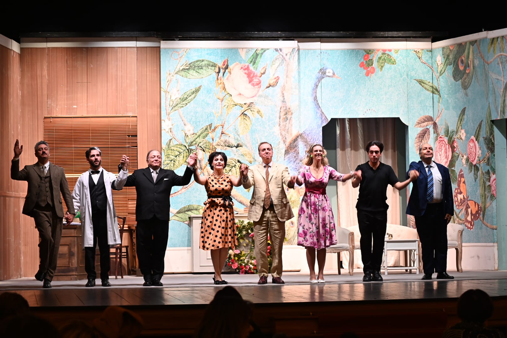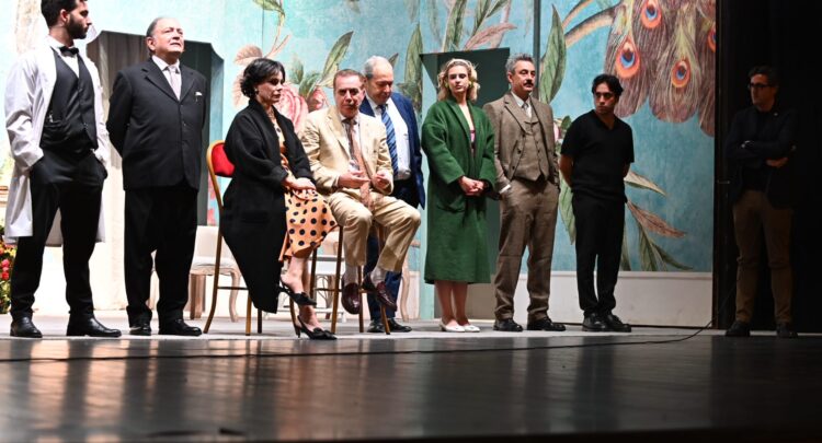 Il Vedovo sorprende il pubblico: il sipario si riapre e l’intera compagnia dialoga con gli spettatori